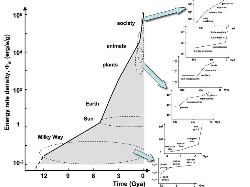 From Using Complexity Science to Search for Unity in the Natural Sciences by Eric Chaisson. https://www.researchgate.net/figure/These-7-graphs-show-changing-values-of-energy-rate-density-Phm-for-myriad-systems_fig1_268363914
